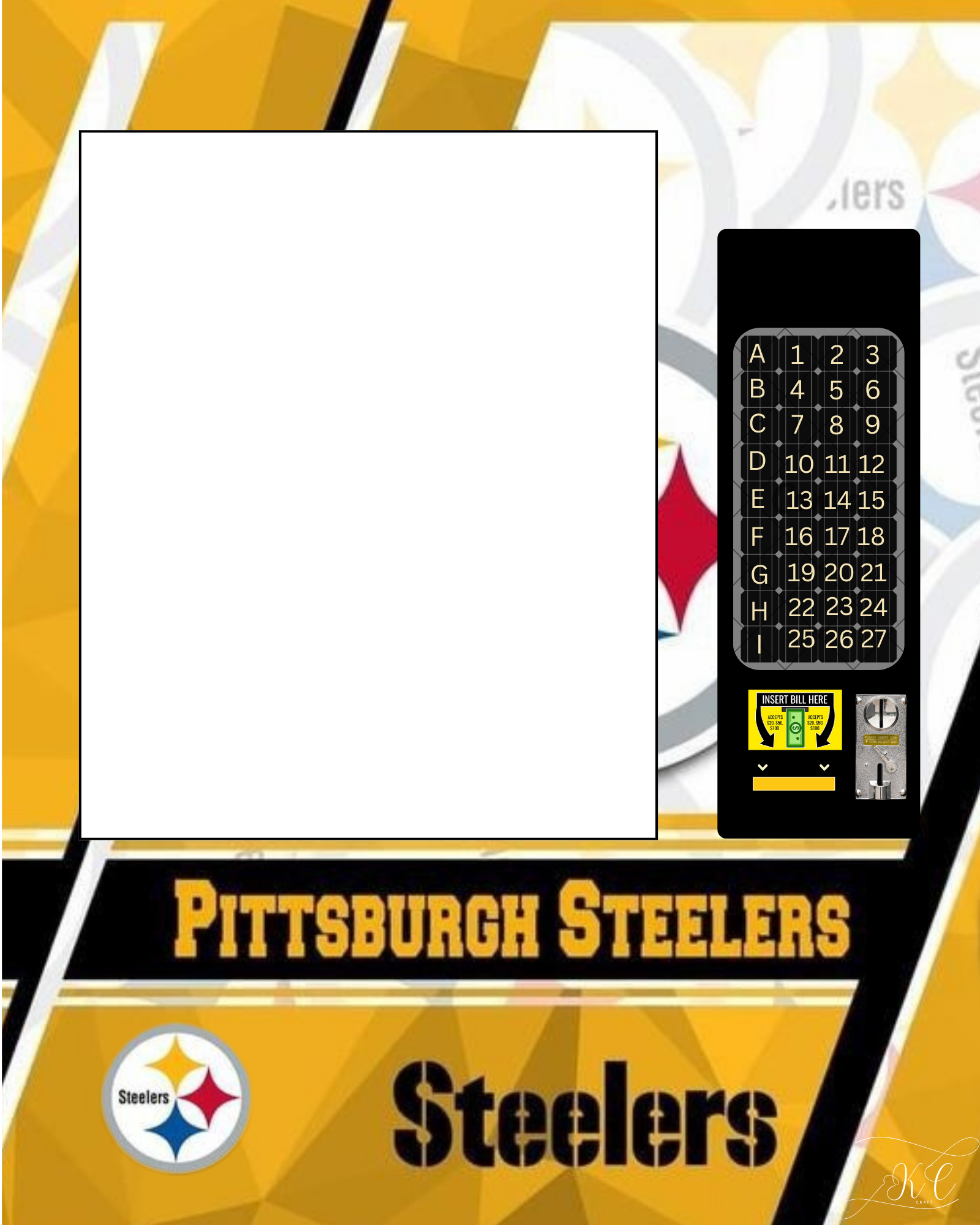 Create your own custom vending machine with this NFL themed template bundle Designed for easy editing in Canva, these templates let you personalize and print your own vending machine graphics featuring three popular teams: Green Bay Packers, Pittsburgh Steelers, and New England Patriots.